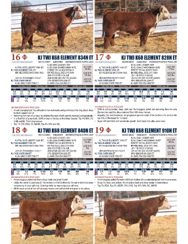 •  A homozygous polled bull that is long made and great footed.  •  A homozygous polled Element x K68 flush brother with accelerated growth and muscle mass.