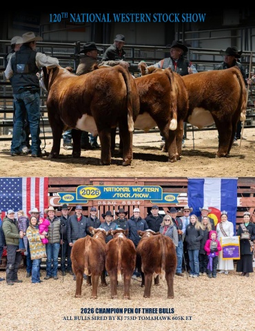 120 NATIONAL WESTERN STOCK SHOW TH 2026 CHAMPION PEN OF THREE BULLS ALL BULLS SIRED BY KJ 753D TOMAHAWK 605K ET PG 4 ◆ JENSEN RANCH BULL SALE ◆